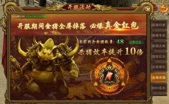 新服期间击杀指定boss可获得红包,神装合成材料等珍贵奖励,名额有限,先到先得