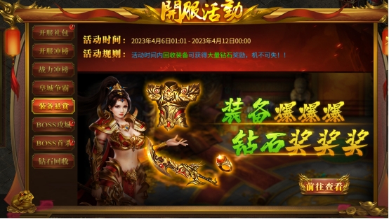活动内容:开服6天战力冲榜比拼,达到目标领取丰厚奖励