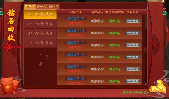 活动内容:活动时间内回收装备可获得大量钻石奖励