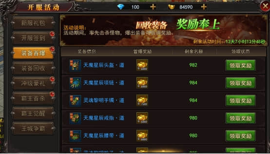 【活动内容】活动期间,率先回收极品装备可以获得高额奖励